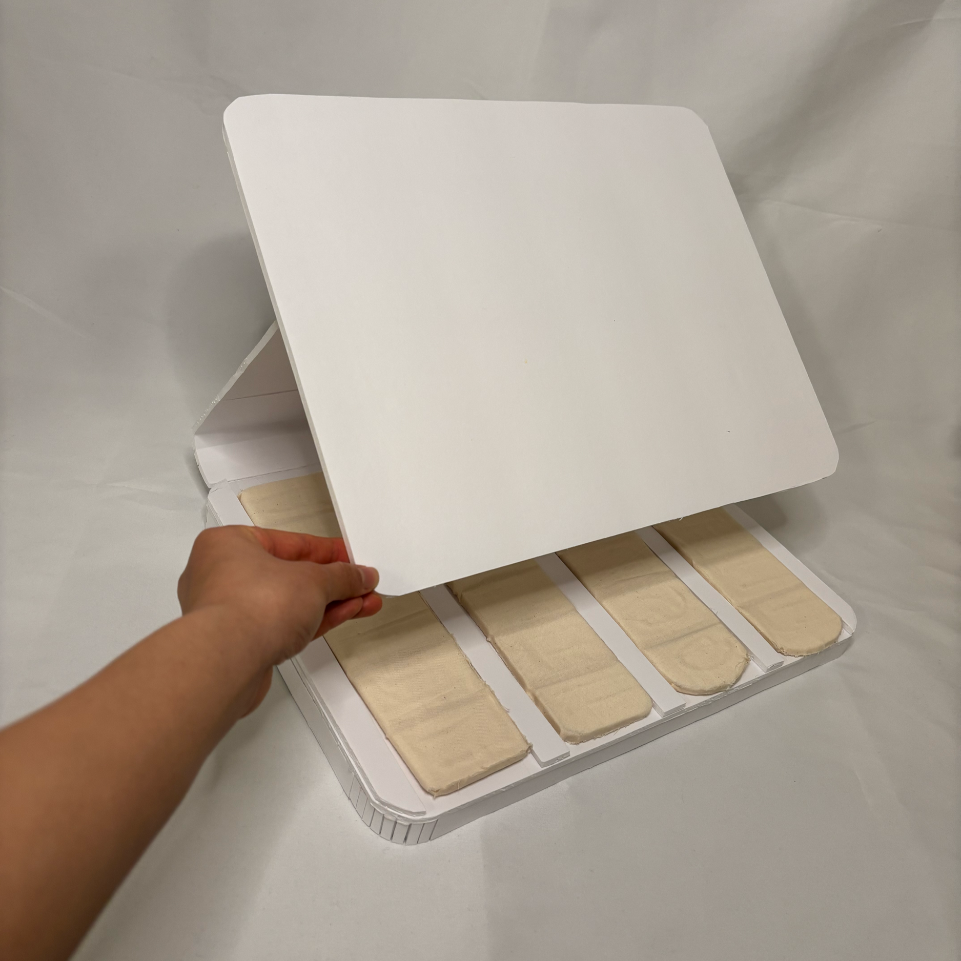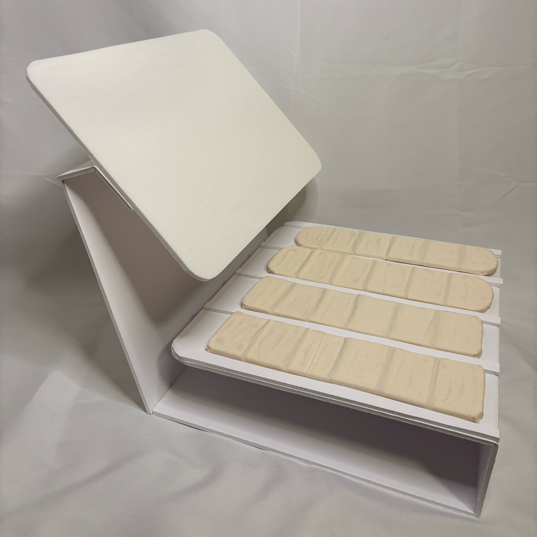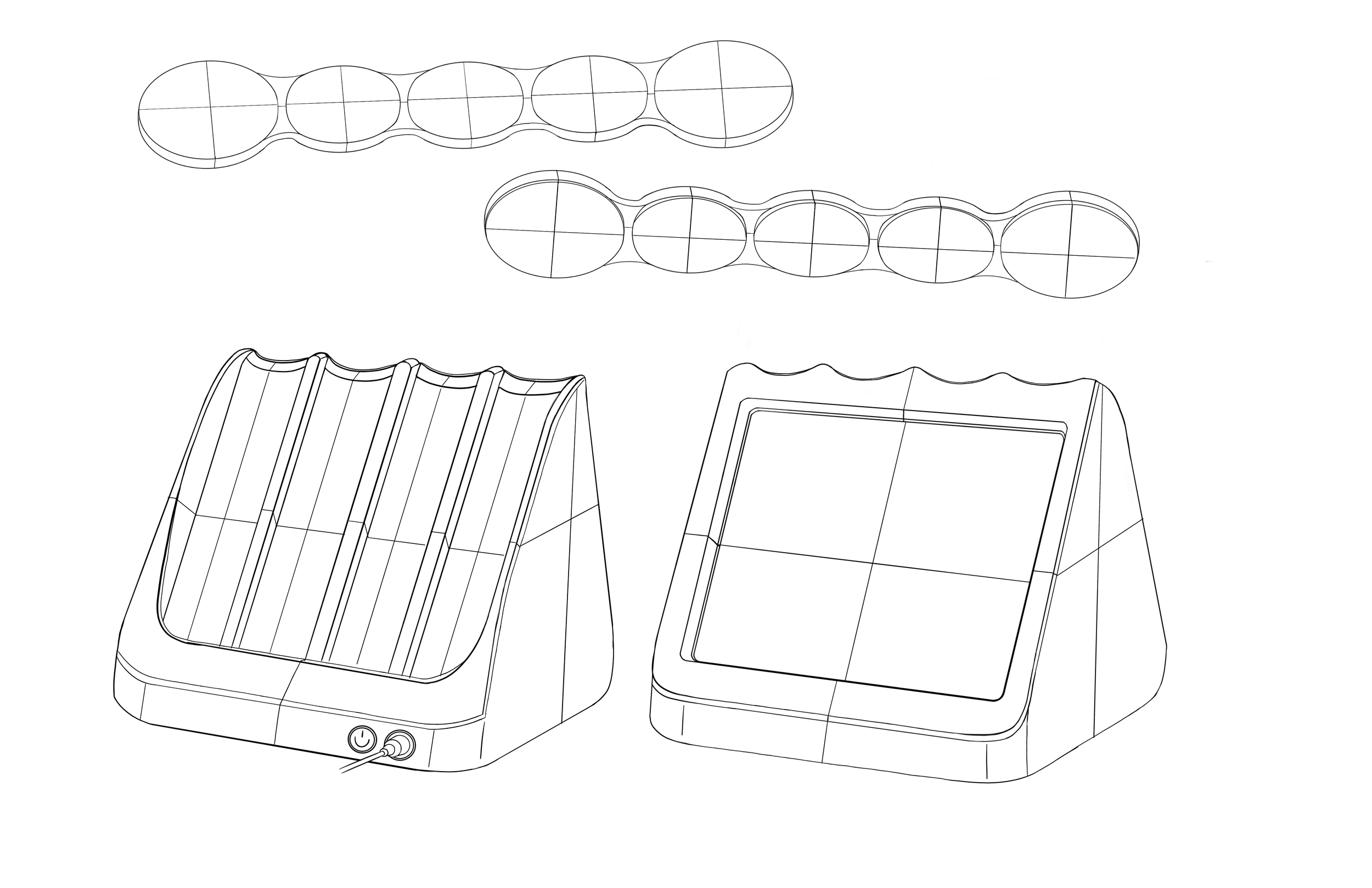NeoTrak is fetal monitoring reimaged. It consists of a monitor display and four body conforming sensor strips that track fetal heart rate and uterine contractions throughout labor. When not in use, the sensor strips nest neatly into the back of the monitor display, where they recharge wirelessly. The monitor displays the fetal heart race trace and toco trace, as well as the battery life of the strips. The display presents real-time fetal heart rate and toco traces, along with the battery status of each strip, creating a more seamless and intuitive monitoring experience.