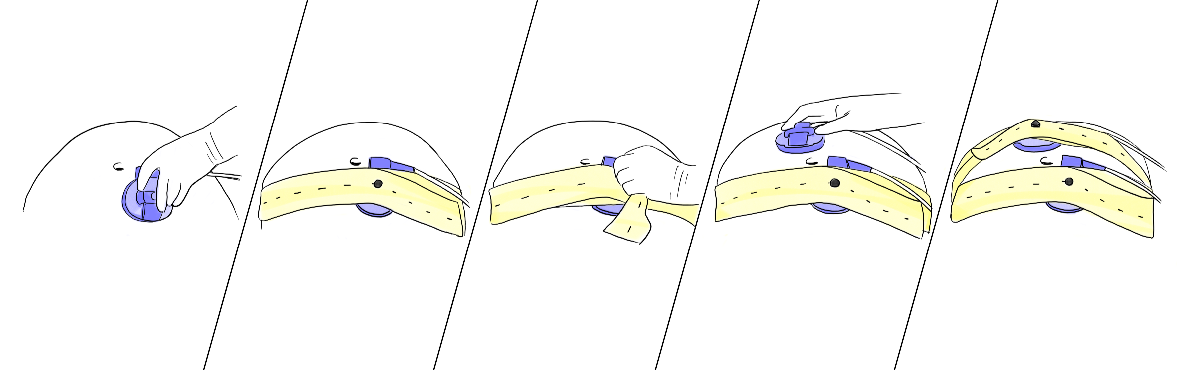 Wrap elastic straps around the mother’s abdomen. Plug the sensors into the fetal monitor machine.